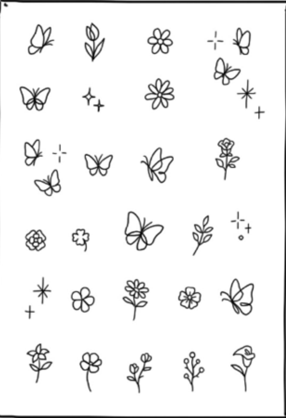 【個人使い用】オリジナルイヤータトゥーフィルム 蝶と花 モノクロ